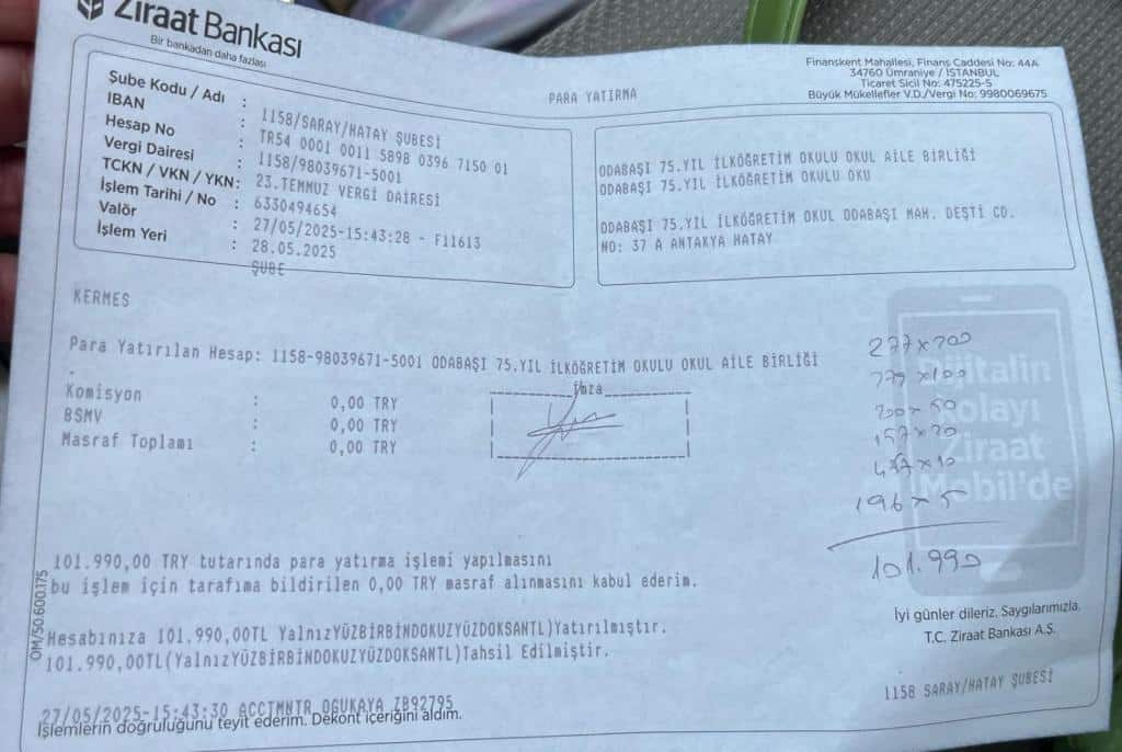 Not:Kermesimizden elde ettiğimiz gelirimiz olan 101.990 TL Okul Aile Birliği hesabımıza yatırılmıştır.